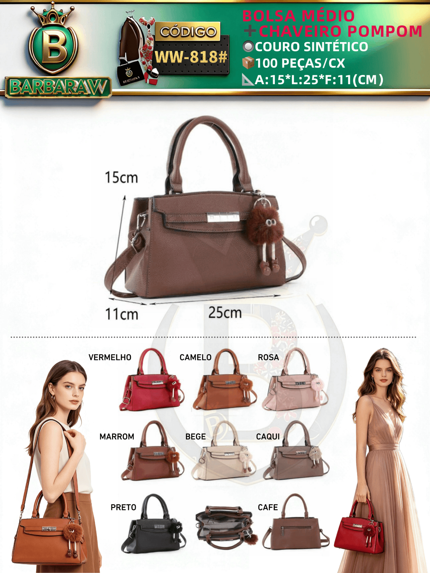 bolsa médio feminina com chaveiro pompom(Dica‼️Este anúncio a compra avulso ou em pacote)