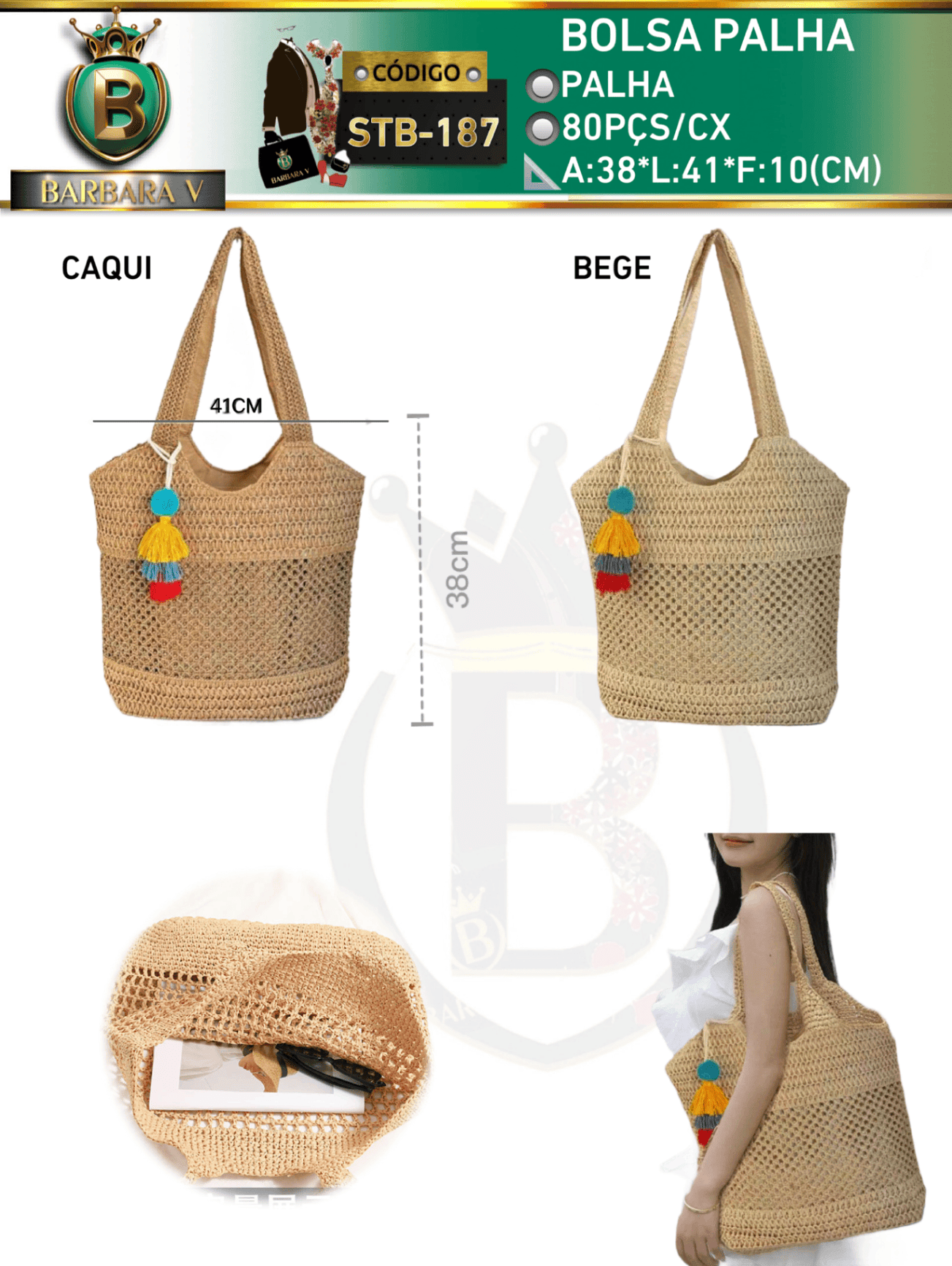 bolsa palha pacote com 15 unidades cor sortido cada peça R$45