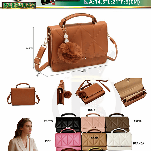 Bolsinha feminina com chaveiro pompom (Dica‼️Este anúncio a compra avulso ou em pacote)