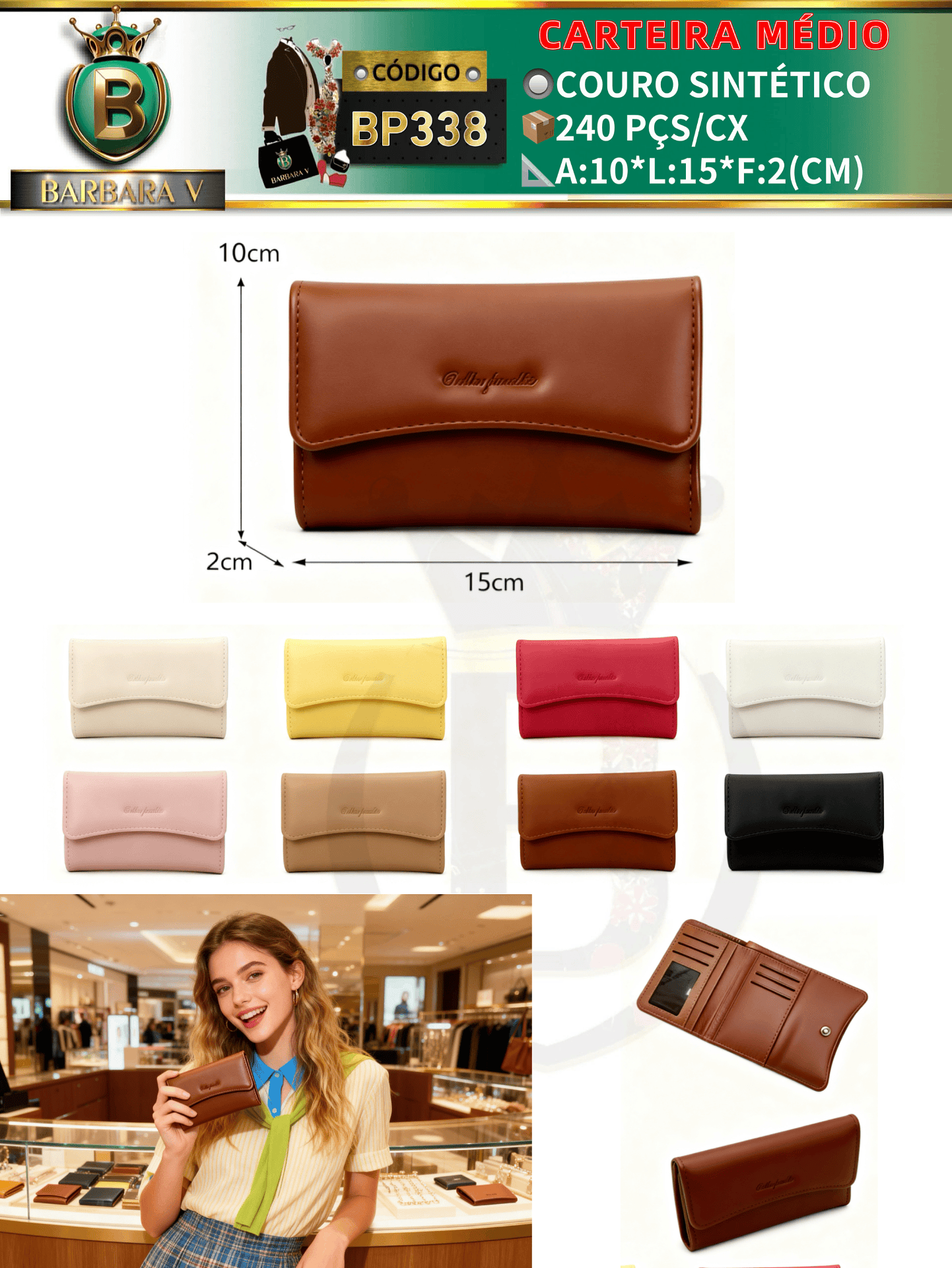 Carteira médio feminina pacote com 15 peças cor sortido cada peça R$13