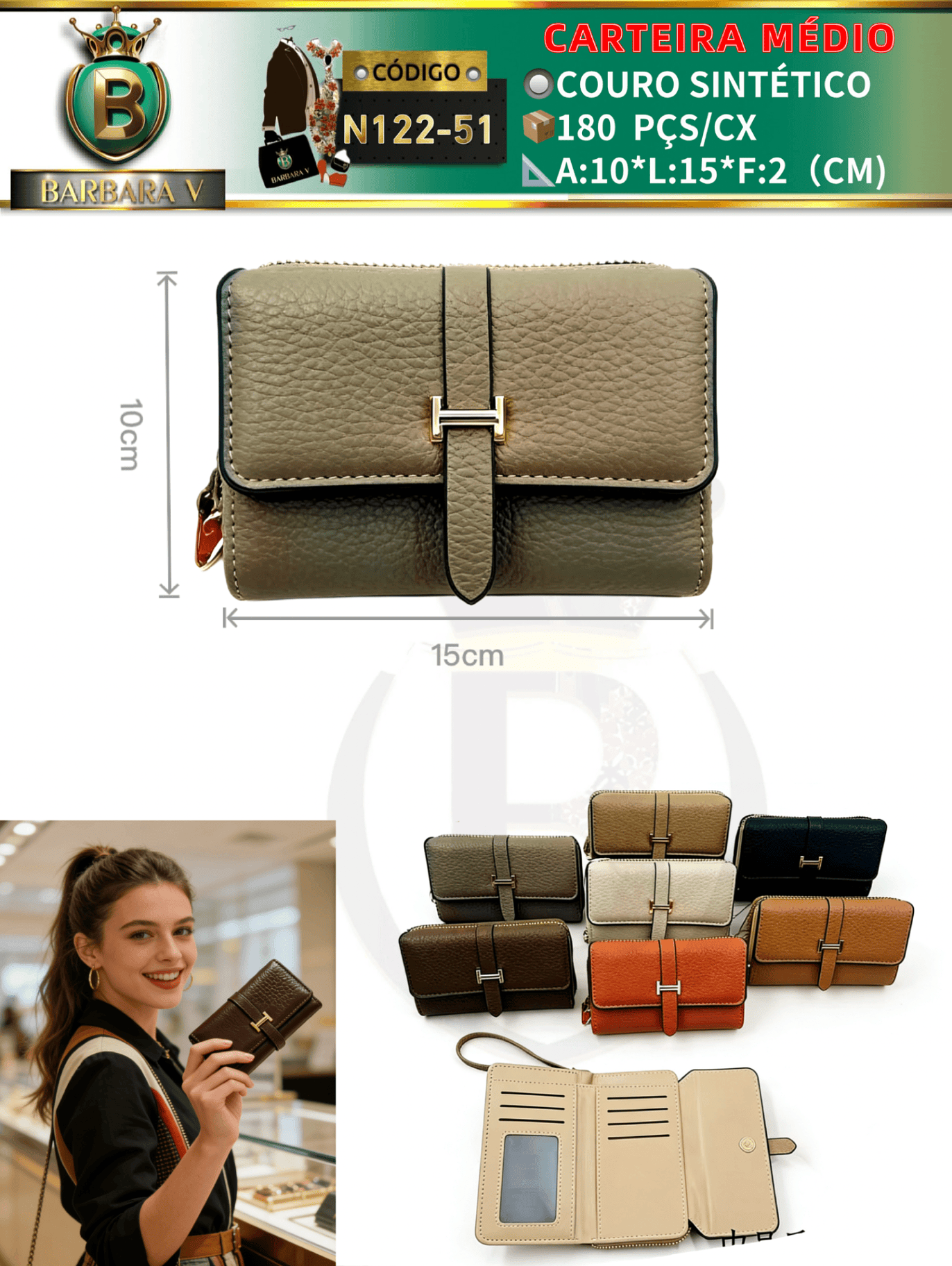 Carteira médio feminina pacote com 15 peças cor sortido cada peça R$17