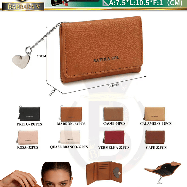 Carteira pequena feminina pacote com 15 peças cor sortido cada peça R$11