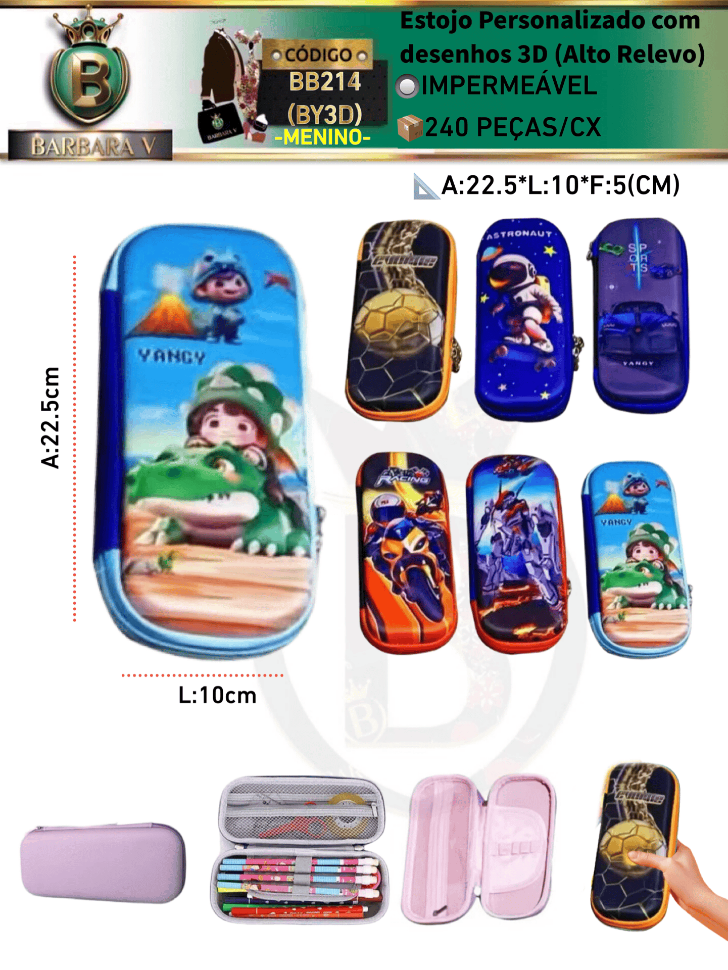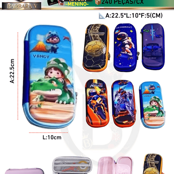 Estojo Personalizado menino com desenhos 3D (Alto Relevo)PACOTE com 15 Peças tampa aleatório/cada peça R$13.00