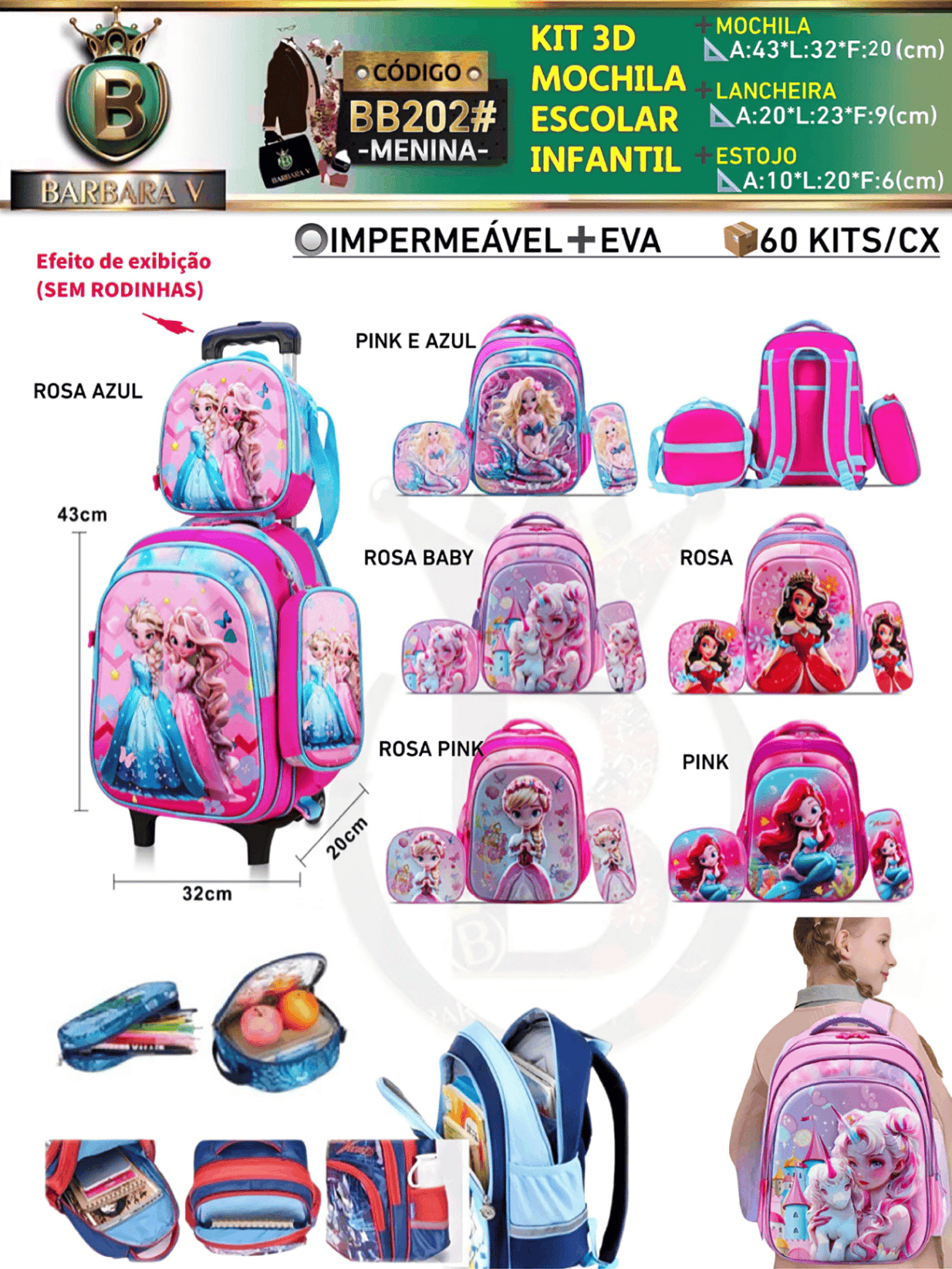 KIT 3 peças 3D MOCHILA ESCOLAR INFANTIL-MENINA (Dica‼️Este anúncio possui compra avulso ou em pacote