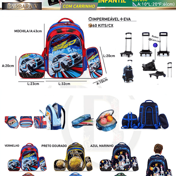KIT 4 peças 3D MOCHILA+ESTOJO+LANCHEIRA+CARRINHO ESCOLAR INFANTIL-MENINO (Dica‼️Este anúncio possui compra avulso ou em pacote)