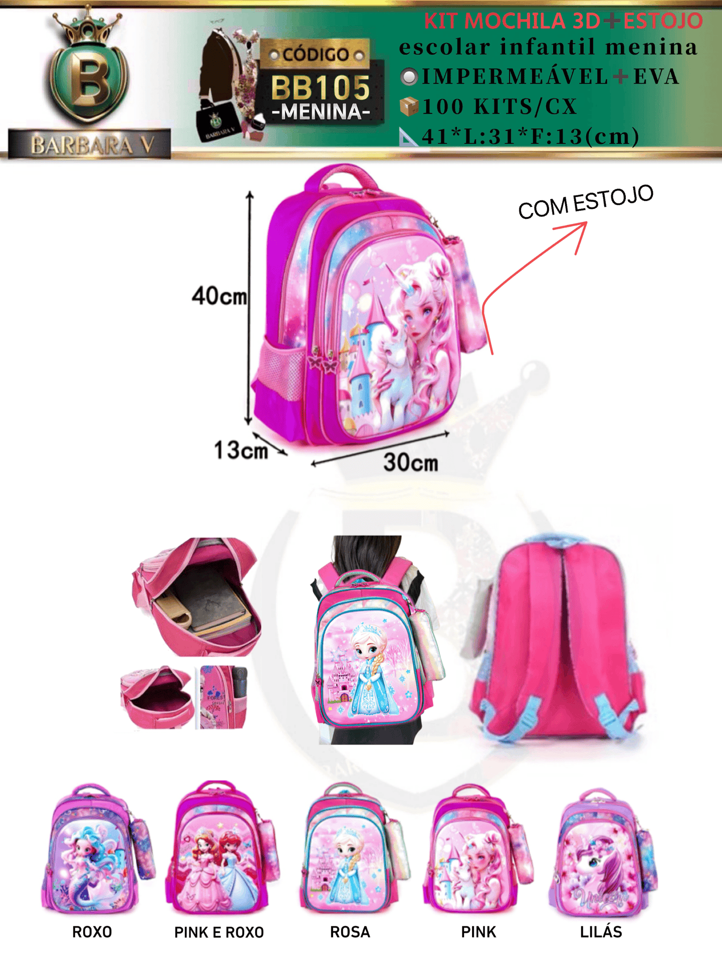 KIT MOCHILA 3D+ ESTOJO escolar infantil menina (Dica‼️Este anúncio possui compra avulso ou em pacote)