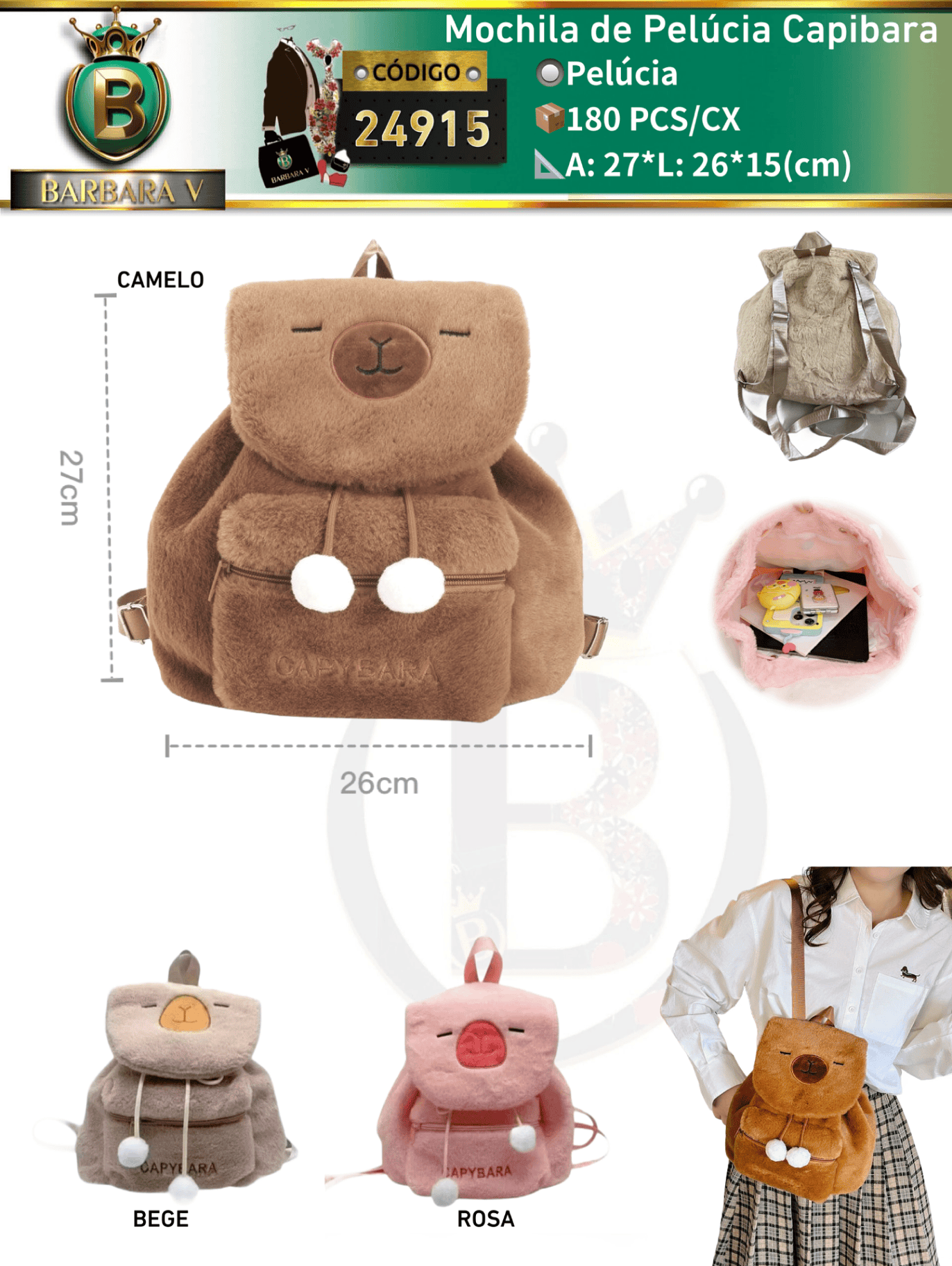 Mochila de Pelúcia Capibara (Dica‼️Este anúncio a compra avulso ou em pacote)