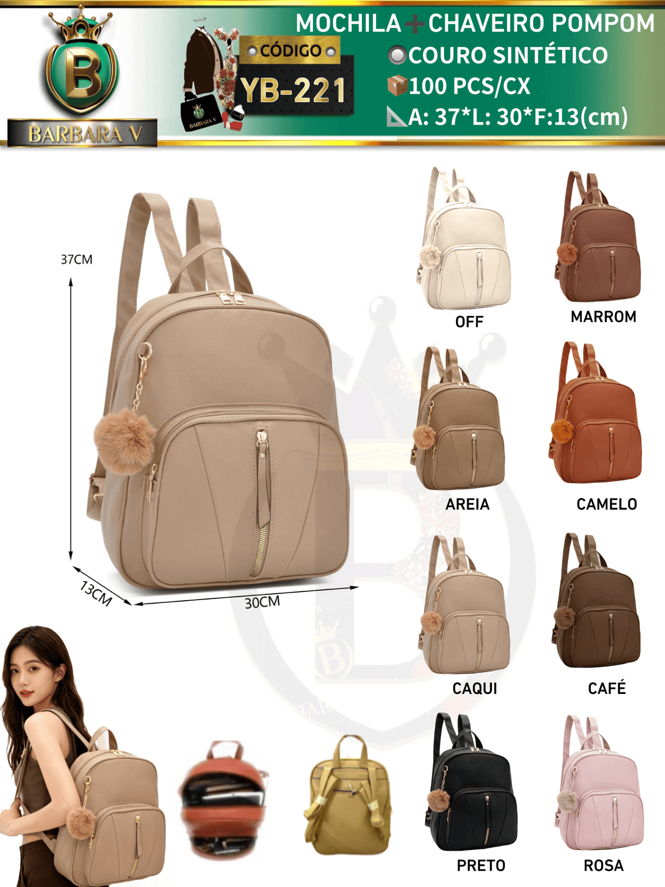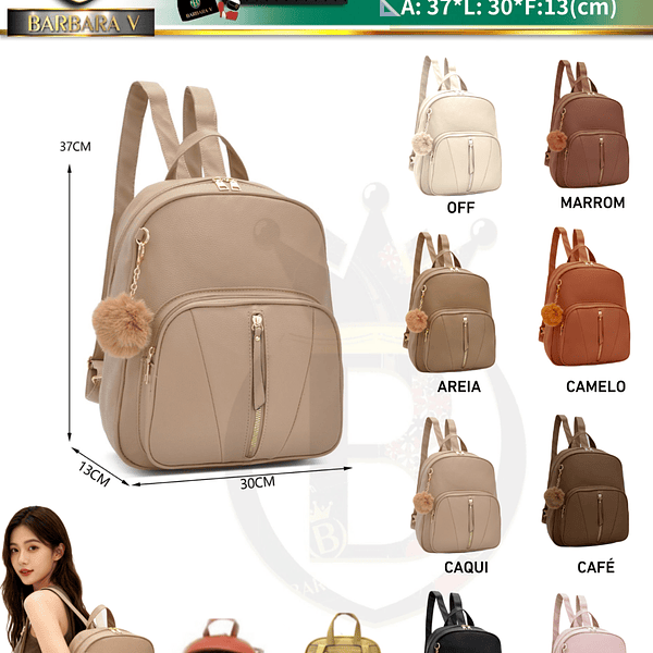 Mochila feminina com chaveiro pompom pacote com 15 unidades cor sortido cada peça R$45