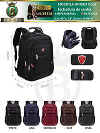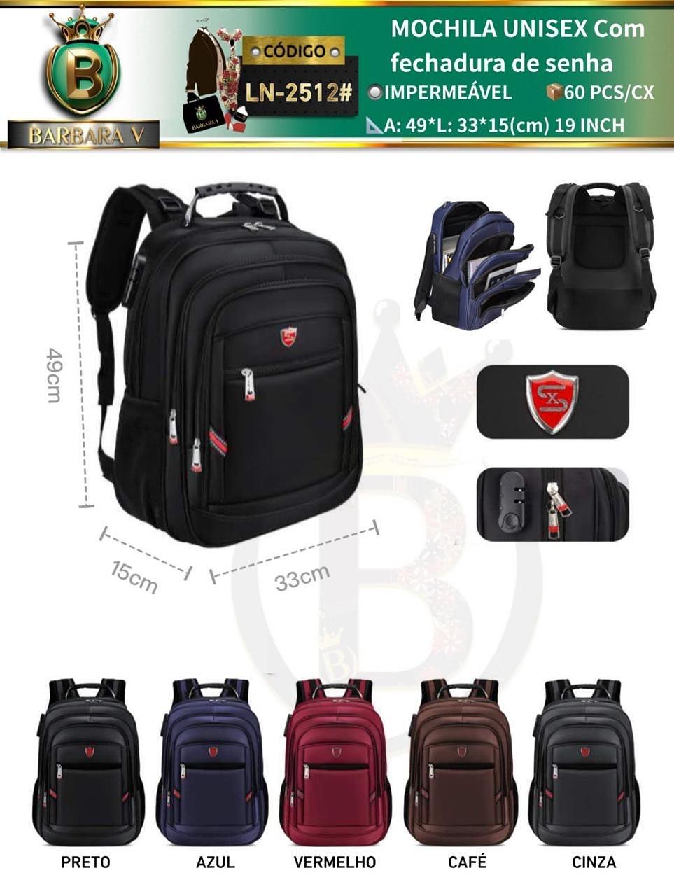 MOCHILA UNISEX Com fechadura de senha com CABO USB/P2 pacote com 15 Peças cor sortido cada peça R$55