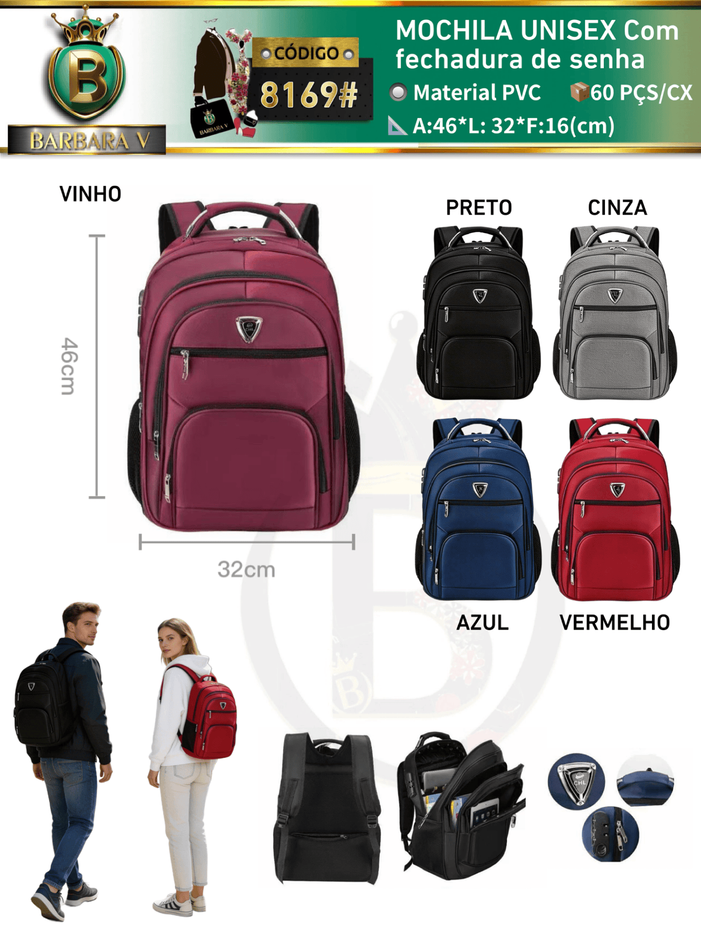 MOCHILA UNISEX Com fechadura de senha(Dica‼️Este anúncio a compra avulso ou em pacote)