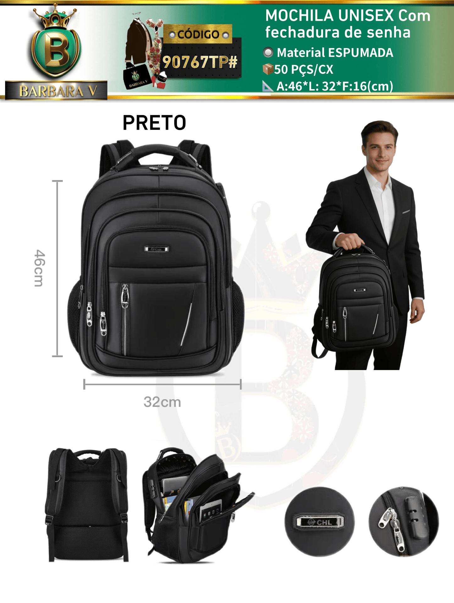 MOCHILA UNISEX Com fechadura de senha