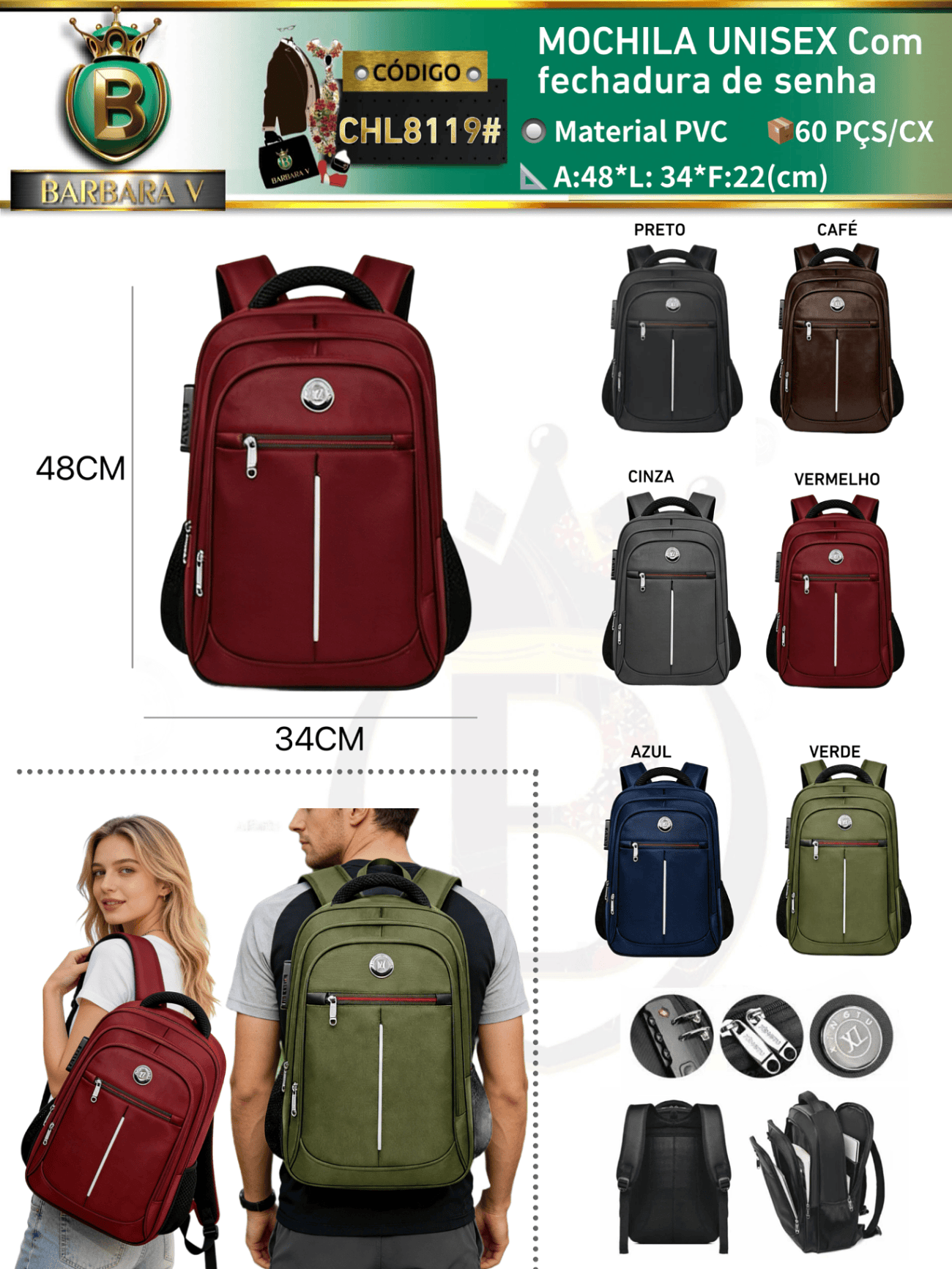 MOCHILA UNISEX Com fechadura de senha(Dica‼️Este anúncio possui compra avulsa ou em pacote)