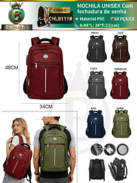 MOCHILA UNISEX Com fechadura de senha